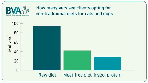 However, clients are not routinely discussing dietary choices with their vet. 6 in 10 vets were unsure just how many of the cats and dogs they see are fed meat-free diets.
