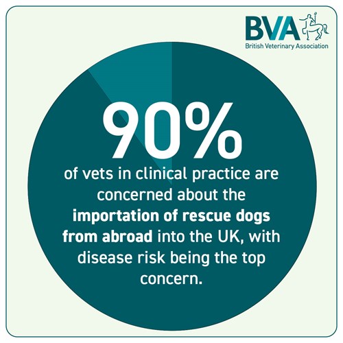 - 90% of vets in clinical practice are concerned about the importation of rescue dogs from abroad into the UK, with disease risk being the top concern (cited by 98% vets).